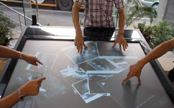 其技术原理其实是超短焦投影+红外触控。就是由投影机将制作好的立体三维影像画面投射在指定的桌面上,人们可通过手指、手掌、手臂来触摸调控投影画面进行互动交流。
