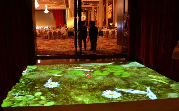 地面交互式投影是一种集商业价值和娱乐于一体的先进投影技术。利用虚拟现实技术将完成的画面以投影的形式投影在地面上,利用动态捕捉技术实现人与地面动态画面的实时交互。当人们走过互动区时,各种互动效果会随着你的脚步而相应改变,给每个人带来一种神奇的体验。