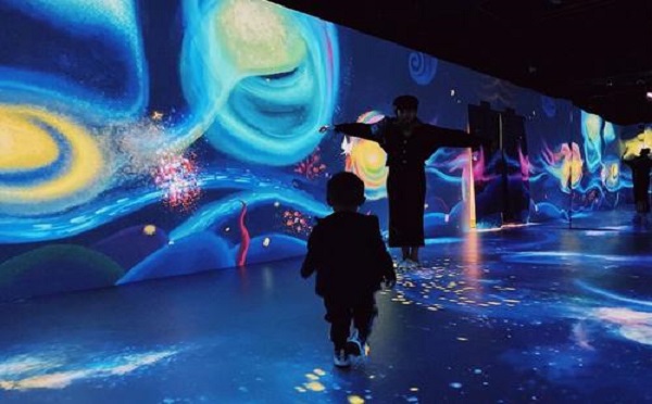 地面互动投影可以将任意一块平淡无奇的地板区域变成令人兴奋的实时交互的神奇之地,整个过程操作简单灵活,可以同时多人互动,而且空间不受限制,它有水波纹、翻转、碰撞、擦除、避让、跟随等多种表现形式。不仅可以满足观赏效果,还能跟着体验者的动作变化而变化,因此也为展厅吸引了很多的外来人流。