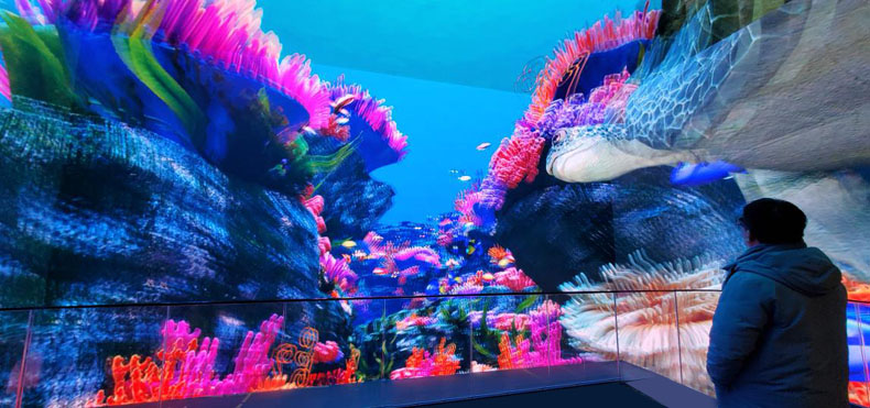 屡获殊荣的广州创一在中国山东省青岛市新建成的五面体3D 沉浸式展项为观众提供令人惊叹的视觉体验。