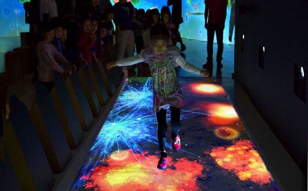 互动投影体系为相结合当今世界最高科技的广告宣传和游戏娱乐互动体系,给予一种与众不同并令人兴奋的广告宣传与游戏娱乐交相辉映的作用体系,适用任何公共室内场地,尤其是休闲、购物、游戏娱乐及文化教育场地,现阶段虚拟互动投影技术应用已经完成人机交互方面,并有多种多样与自然或虚拟世界的模拟仿真。
